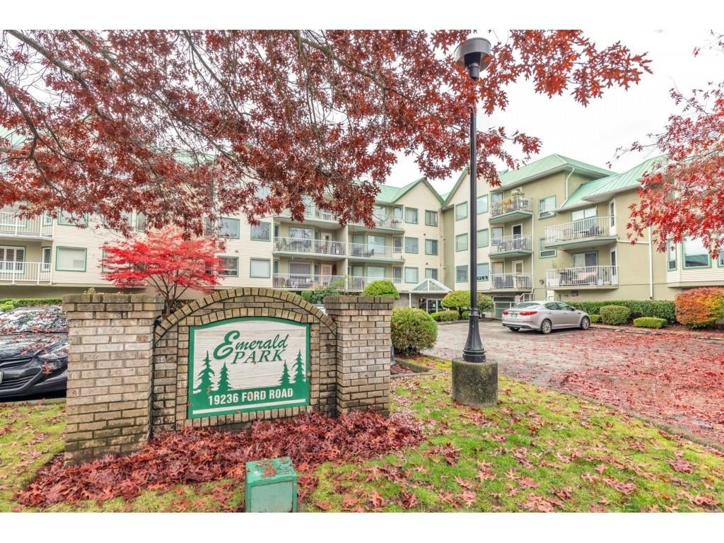 Live in the heart of Pitt Meadows at Emerald Park. Presenting this bright & spacious 1 bedroom & 1 bath condo. This recently renovated home features an open living & dining area perfect even for large house size furniture, a fully appointed kitchen, a bedroom that can easily accommodate king bed set+ home office/sitting/vanity & an ensuite walk-in closet, a laundry room of the size of a den for extra storage or for a hobby room. Other features include a west facing balcony, 1 parking stall & full size storage locker plus plenty of visitor parking. One pet is allowed & no rentals. Short walking distance to the West Coast Express & transit, shops, restaurants, schools, library, parks & golf courses . Quick possession possible. Come & book your private showing today!