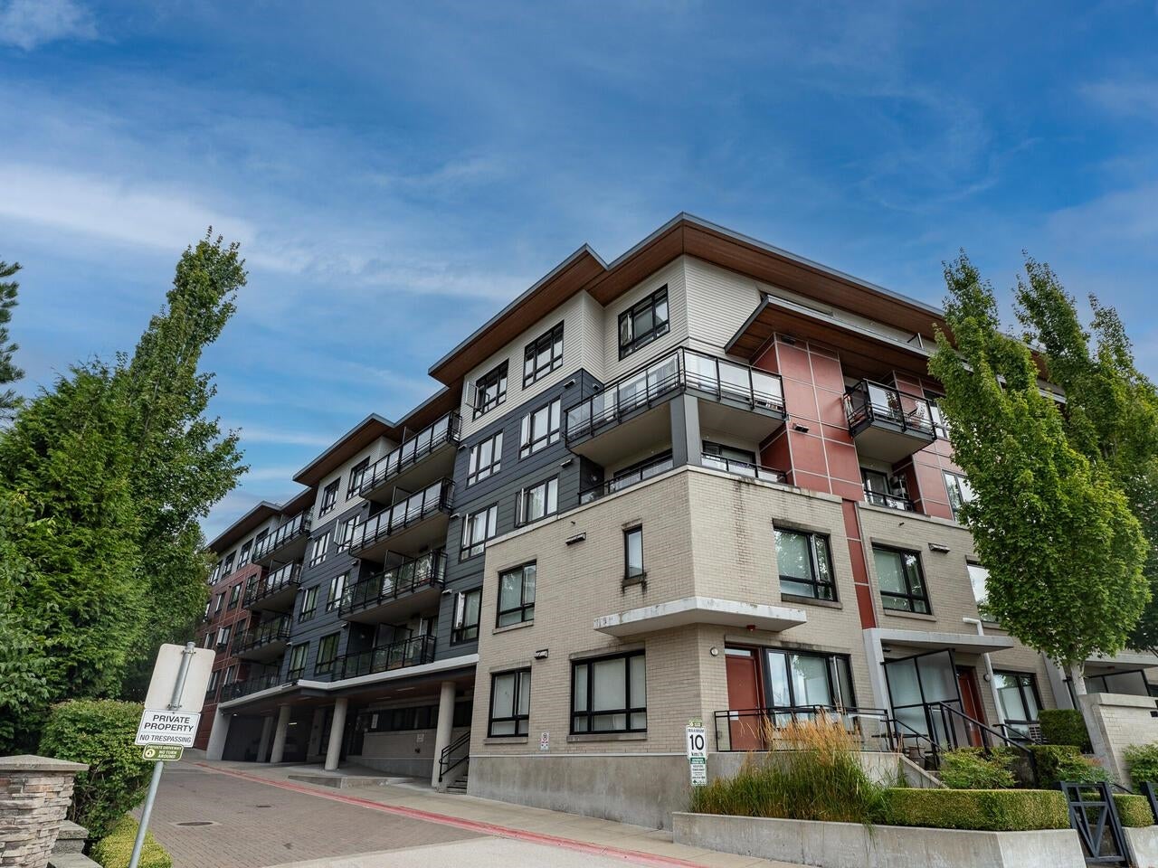 Very spacious 1 Bedroom plus Den unit over 700 SqFt. This well kept property features 9 foot ceilings, laminate flooring, quartz countertops, good size breakfast bar & stainless steel appliances. The large master suite offers enough space for a king-sized bed. The open den area is great for home office & could easily be enclosed. This great unit comes with 1 parking & 1 locker. Each owner's parking stall has the possibility of adding a level 2 EV charging station at owner's expense. Amenities include a gym, lounge/party room & a guest suite. Very convenient location, just a short walk to King George Hub & Skytrain Station. This is NOT a ground floor unit. Don't miss the good opportunity to own this great unit at very affordable price!