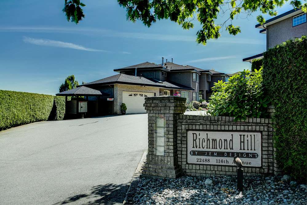 Beautifull Townhome at Richmond Hill Estates, 2400+ square feet on 3 levels of well maintained, comfortable living, very functional layout with a huge well layed out kitchen with park like setting views, huge deck, formal dining room excellent for entertaining. Living Room has a beautiful fireplace with a new mantel for those cool evenings, Second floor offers large master with river views double sided fireplace, 5 pcs ensuite with separate shower, jetted soaker tub, double sinks, and large walk in closet, 2 generous sized bedrooms round out this floor, Downstairs offers a great sunken recreation/office room area, beautiful patio and grass area. Bonus large storage room. This air conditioned home is close to recreation, parks, Fraser River, transit and shopping. Age restricted to 19+.